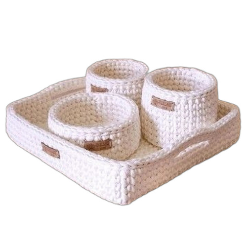 سبد قلاب بافی تریکو مجموعه 4 عددی میباشد .کیفیت بافت بالا بوده ، دیواره کار محکم و با استقامت و رنگبندی زیبایی دارد .ابعاد کار 20 و 15 و 10 سانتیمتر میباشد.