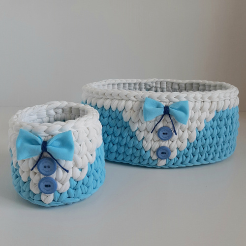 سایر توضیحات- جنس سبد: نخ تریکو مرغوب و با کیفیت - قابل استفاده به عنوان ارگانایزر لوازم کودک - جنس کفی چوب ام دی اف 3 میلی متری - ابعاد: 10x11 سانتی متر سبد دایره 10x17x27 سانتی متر سبد بیضی