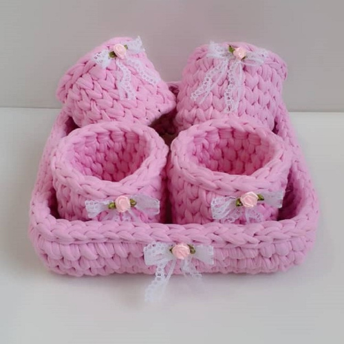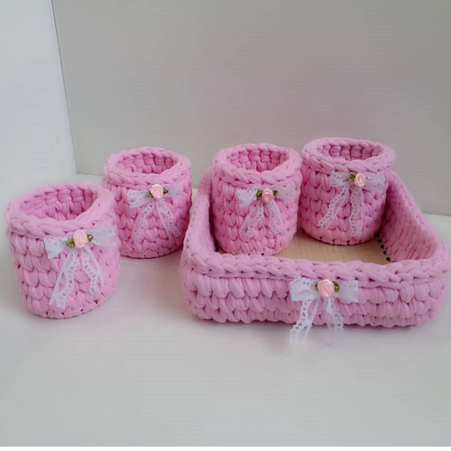 سایر توضیحاتشامل: 1 عدد سبد نظم دهنده به شکل مربع با سایز 22x22x4 سانتی متر 4 عدد سبد نظم دهنده به شکل دایره با قطر 9 سانتی متر و ارتفاع 10 سانتی متر جنس سبد: نخ تریکو مرغوب و با کیفیت قابل استفاده به عنوان ارگانایزر لوازم کودک جنس کفی چوب ام دی اف 3 میلی متری جهت استقامت بیشتر کار
