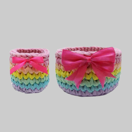 سبد قلاب بافی تریکو طرح رنگارنگ کد 9090 مجموعه 2 عددی