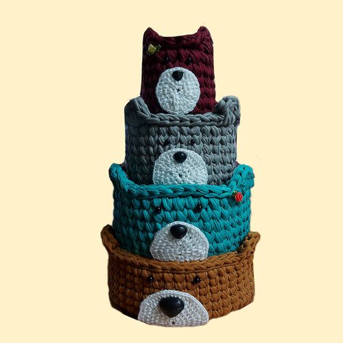 ست سبد وسایل کودک مدل خانواده خرسی رنگارنگ مجموعه 4 عددی