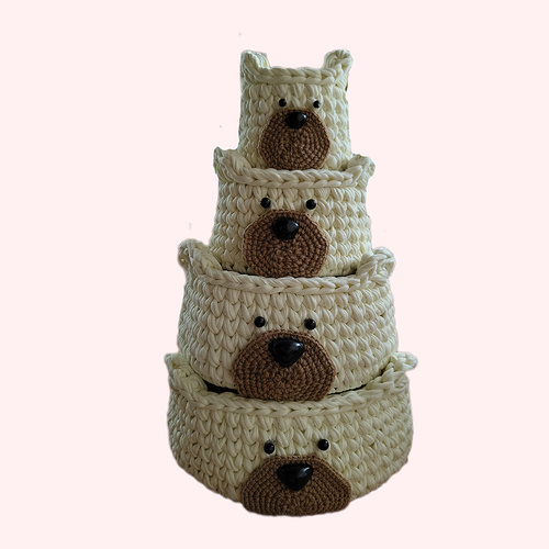ست سبد وسایل کودک ،طرح خرسی قلاب بافی مجموعه 4عددی