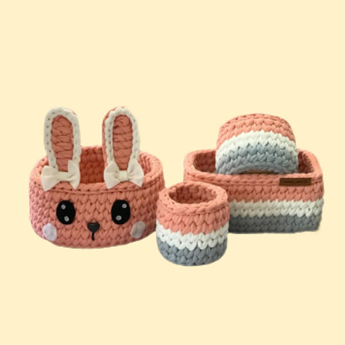 سبد قلاب بافی تریکو طرح نوزادی خرگوشی کد 68 مجموعه 4 عددی
