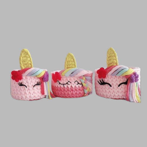 سبد قلاب بافی تریکو طرح اسب تک شاخ مجموعه 3 عددی