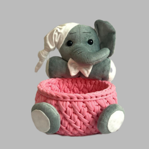 سبد قلاب بافی تریکو طرح عروسک فیل کد 1