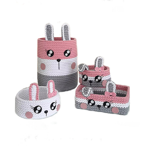 سبد قلاب بافی تریکو مدل سیسمونی خرگوشی کد 2 مجموعه 4 عددی