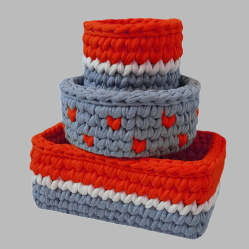 ست سبد قلاب بافی تریکو بافته شده توسط دستبافتهای خاله لیلا ،دارای رنگبندیهای شاد و متنوع میباشد . دیواره محکم و ایستایی کافی دارد. ابعاد کار مستطیل 25x15 دایره 20و دایره 10 سانتیمتر میباشد . مناسب چیدمان کمد کودک و حتی بزرگسالان برای نظم دهی به لوازم بهداشتی،پوشک،شامپو،عطر و اسپری ،لوازم ارایش،و حتی لوازم و ابزار خیاطی ویا لوازم تحریر دانش آموزان میباشد. تنوع رنگی کار بالا است.