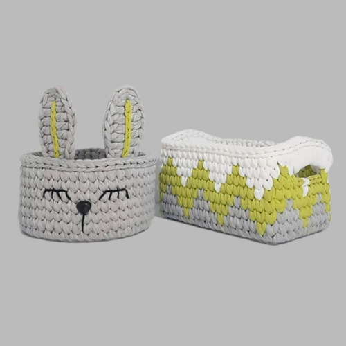 سبد قلاب بافی تریکو مدل خرگوشی کد 001 مجموعه 2 عددی