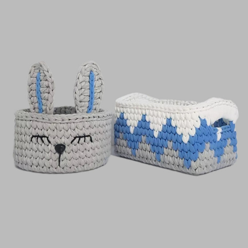 سبد قلاب بافی تریکو طرح خرگوشی کد 006 مجموعه 2 عددی