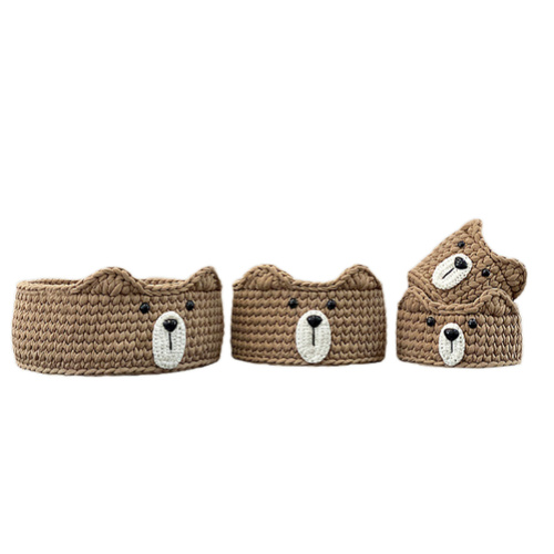 مجموعه چهار تایی سبد طرح خانواده خرسی در رنگ خاکستری خاکی با بافت با کیفیت از جنس تریکو میباشد. ابعاد کار 22 و 20 و 15 و 10 سانت میباشد.مناسب تزیین اتاق کودک و نکهدارنده لوازم بهداشتی نوزاد و کودک بوده و استحکام و زیبایی بالایی دارد