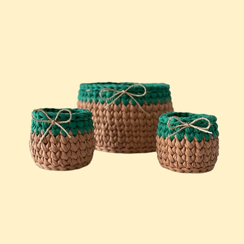 سبد قلاب بافی تریکو ،مجموعه 3تایی ،با نمای سنتی و ساده مناسب اشپزخانه و میز ارایشی شما عزیزان میباشد.در قطر دایره 20سانت و قطر دایره 10 سانت بافته میشود.با دیواره محکم و قابلیت شستشو با اسفنج و شامپو می باشد .
