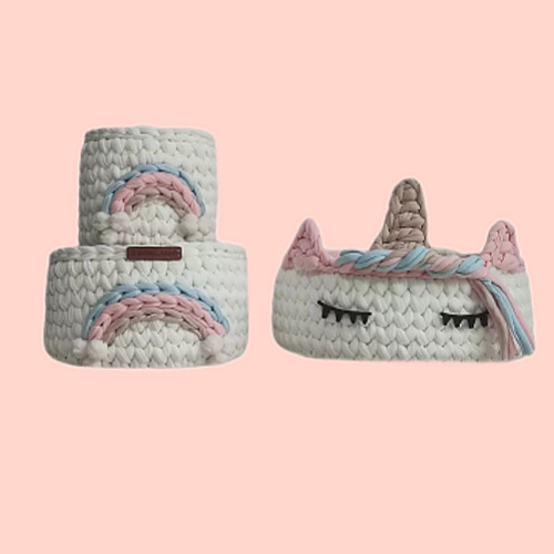 ارگانایزر کودک مدل سبد قلاب بافی تریکو طرح یونیکورن مجموعه 3 عددی