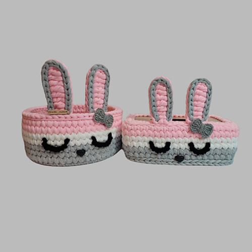 سبد قلاب بافی کودک ،مناسب سیسمونی نوزادان و اتاق کودک میباشد.مجموعه 2 عددی جعبه دستمال کاغذی مستطیل با ضلع 23در 13 و دایره با قطر 20سانت بافته میشود.با قابلیت شستشو با اسفنج و شامپو است.دیواره محکم از ویژگیهای ان است