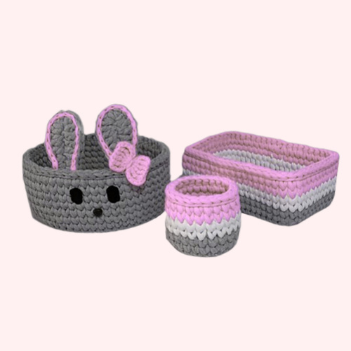 سبد قلاب بافی تریکو طرح خرگوش کد 1 مجموعه 3 عددی