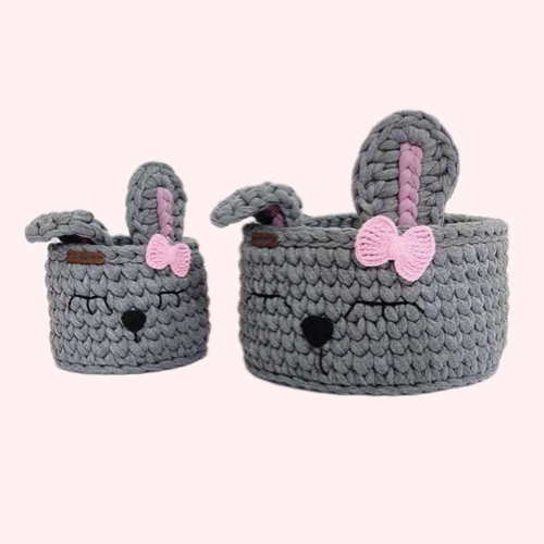 سبد تریکو قلاب بافی طرح مادر ودختر خرگوشی مناسب سیسمونی نوزادان دختر برای نگهداری لوازم بهداشتی و پوشک عزیزانمان میباشد.در دو سایز 20و 15 سانت میباشد.