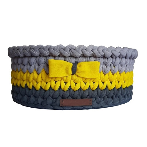 مجموعه ارائه شده شامل یک عدد سبد میباشد که با بافت قلاب بافی از نخ تریکو پارچه ای تهیه شده است .در ابعاد 20 سانت میباشد و مناسب نظم دهی اتاق خواب و اتاق کودک و لوازم زینتی و بهداشتی میباشد.