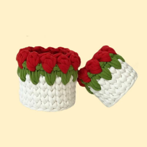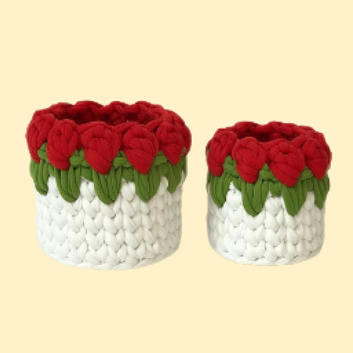 سبد قلاب بافی تریکو طرح گل لاله کد 12 مجموعه 2 عددی
