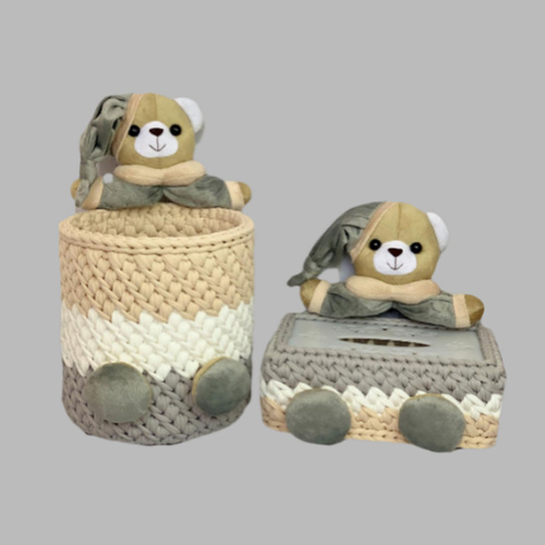 ست جعبه دستمال کاغذی و سطل بافتنی کد 67 مجموعه 2 عددی