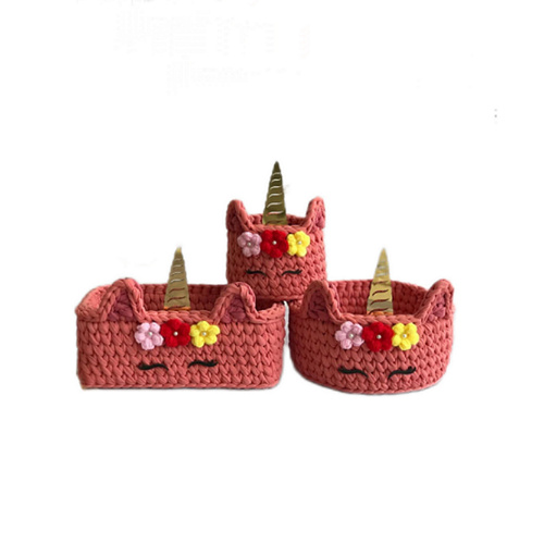 سبد قلاب بافی تریکو طرح خانواده یونیکورن کد 2 مجموعه 3 عددی