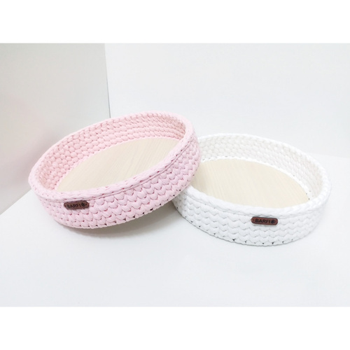 این سبد دستبافت از جنس نخ تریکو میباشد. قابل استفاده برای نگهداری لوسیون های بهداشتی، لوازم آرایش، لاک و گلسر، لوازم شخصی، لوازم التحریر و ده ها کاربرد دیگر با توجه به سلیقه ی شخصی میباشد . همچنین محصول مناسبی برای زیباسازی و مرتب سازی میز و مناسب برای هدیه دادن میباشد. این محصول می تواند یک کالای مورد نیاز برای جهاز عروس نیز باشد
